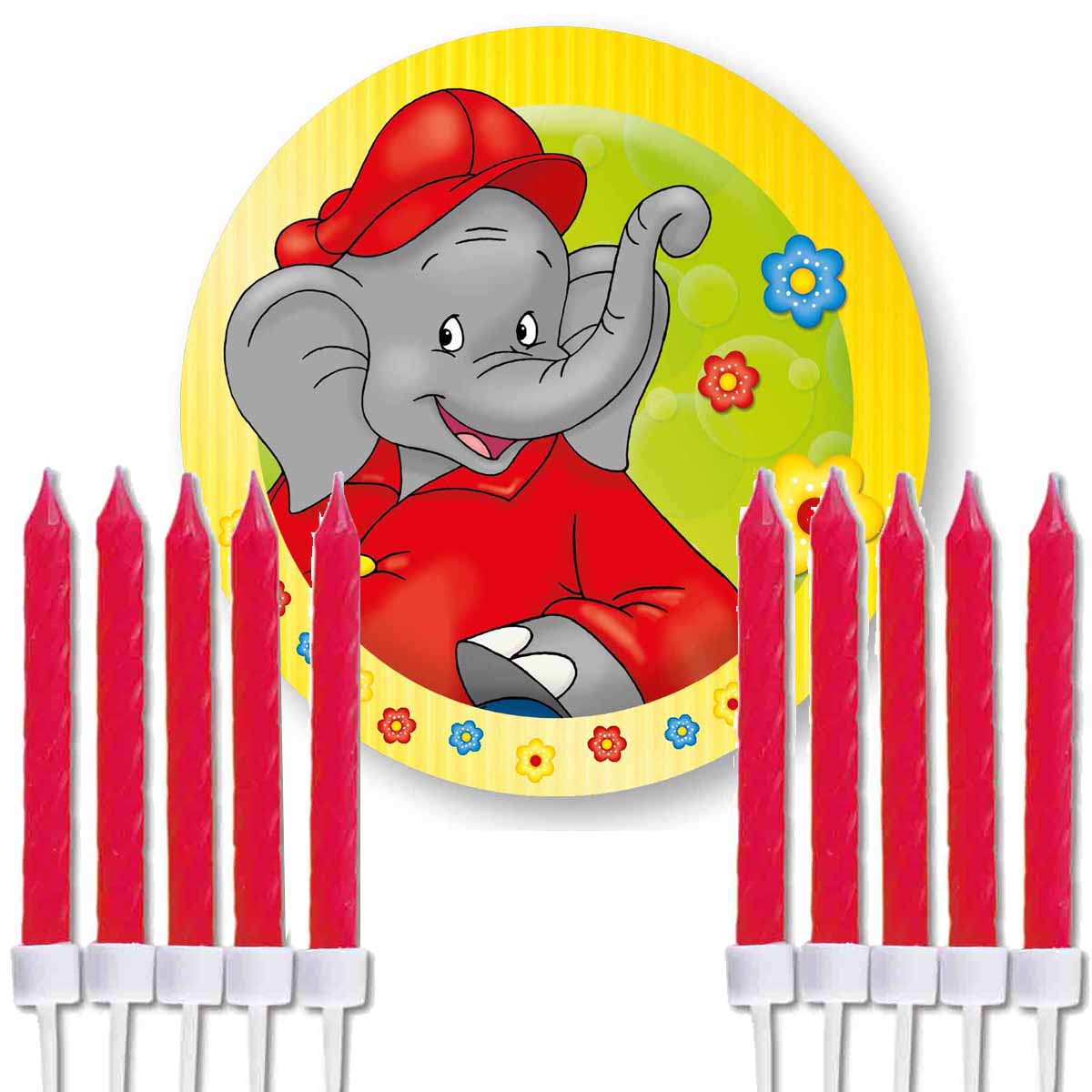 Essbarer Tortenaufleger Benjamin Blümchen mit 10 roten Kuchenkerzen