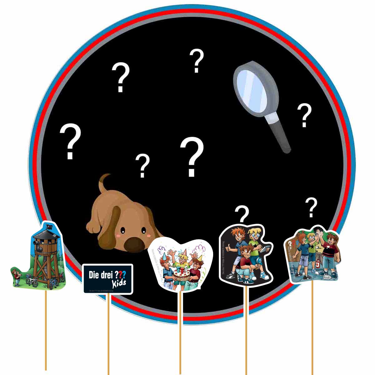 Essbarer Tortenaufleger Detektiv mit Fragezeichen und Kuchenpicker Drei Fragezeichen