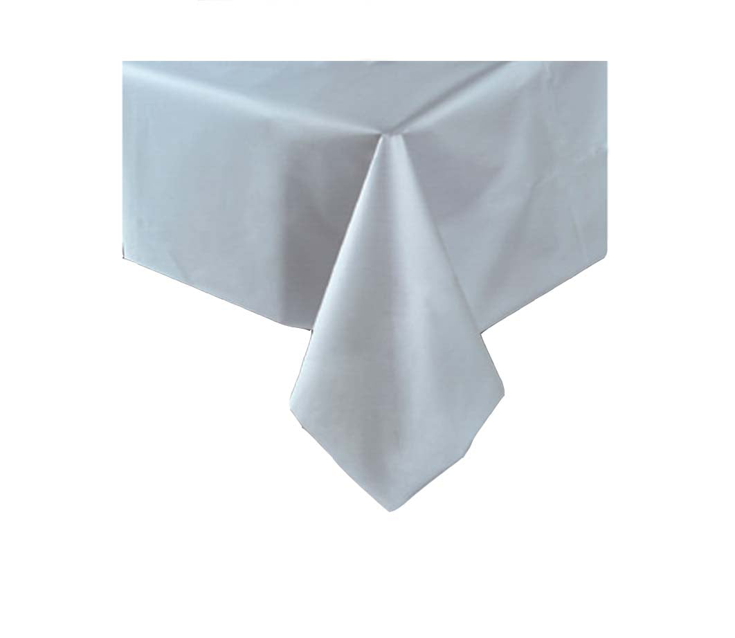Abwaschbare Kunststoff-Tischdecke in Silberfür die Party. 137x274 cm. Ideal für den z.B. Weltraum-Geburtstag oder Ritter-Geburtstag. Auf dieser neutralen Farbe machen sich Motiv-Teller und Becher besonders gut.