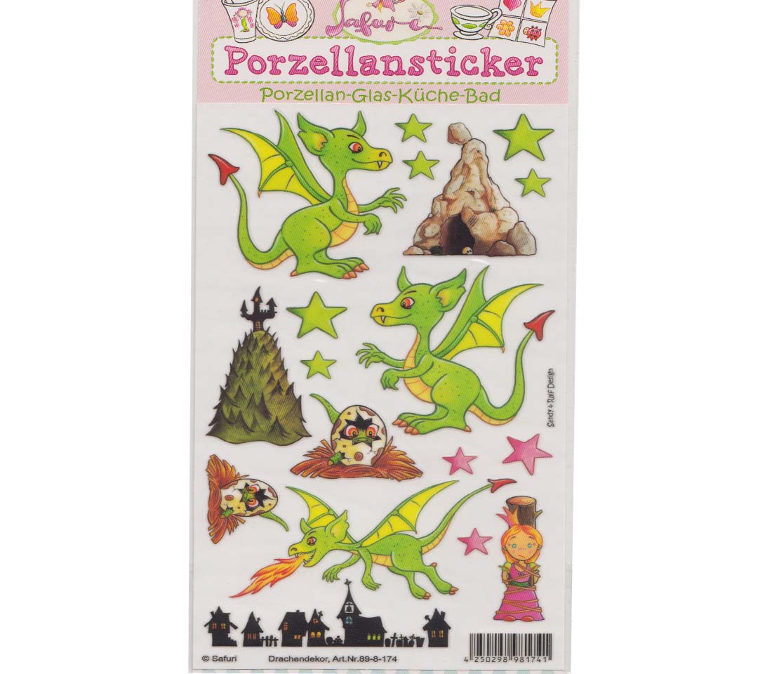 Gestalte mit den Porzellanstickern Drachenz.B. Deine eigene Tasse, Teller, Glas oder Fliese mit den tollen Drachenmotiven. Porzellansticker Drachen-Bogen 20 x 11 cm.