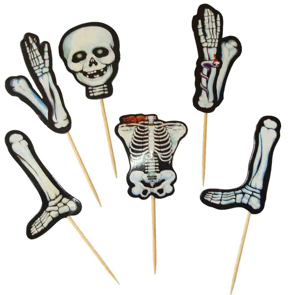 Ideal für die Tischdekoration auf der Halloween Party, Horror-Party oder Grusel Party. Die Picker können in Muffins, Gruselkuchen oder Häppchen gesteckkt werden. Der Skelett-Spicker ist eine tolle Dekoration, die bei Ihren Gästen ankommt.